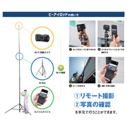 Wi-Fi付きカメラとスマートフォン(モニター兼リモコン)を使用することで、高所からの写真/動画をリアルタイムにモニタリングしながら撮影できます。