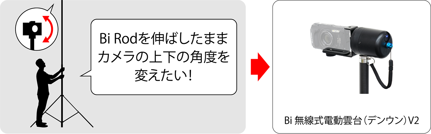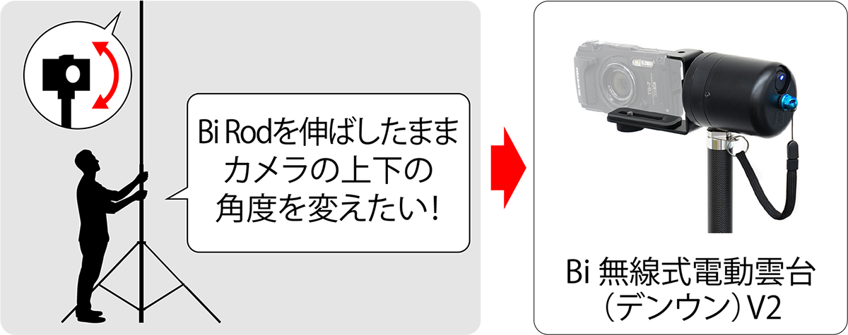 Bi Rodを伸ばしたままリモコンでカメラの向きを